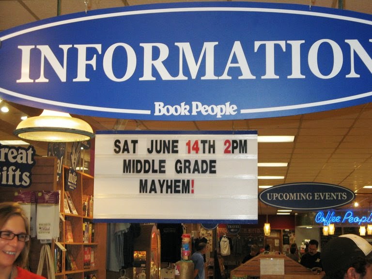 Wow! This weekend's highlight was Middle Grade Mayhem, a joint launch event featuring authors Varian Johnson (The Great Greene Heist (Arthur A. Levine Books)), Greg Leitich Smith (Little Green Men at the Mercury Inn (Roaring Brook)), and Jennifer ("Jenny") Ziegler (Revenge of the Flower Girls (Scholastic)) at BookPeople in Austin!
