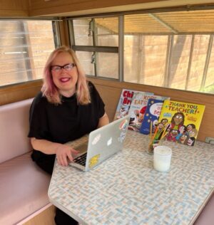 Austin author and fellow VCFA alumnx Cate Berry has a new picture book, Thank You, Teacher, illustrated by Sara Varon (Balzer+Bray, 2023). I was eager to catch up with her and get her take on rhyming picture books, finding balance and living a creative life.