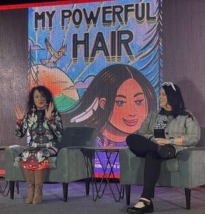 Spotlight image: Carole Lindstrom and Steph Littlebird present My Powerful Hair at the LibLearnX conference.