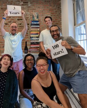 Featured image: Arthur Levine and Levine Querido crew celebrate 100 starred reviews.