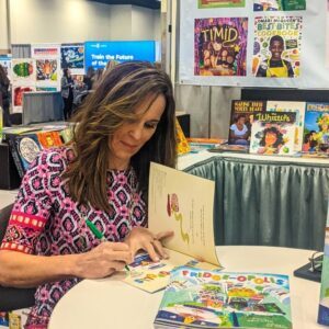 Featured image: Melissa Coffey signing advance copies at the 2022 Texas Library Association Conference.