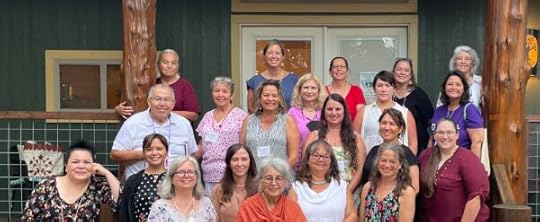 Front row: Leona Prince (Dakelh), Workshop Assistant Gayleen Rabakukk, Loriene Roy (Chippewa)...