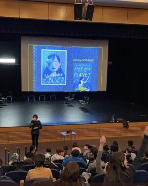 Barbara visiting a middle school, spring 2021.But here’s the thing. I’m a grownup, and I talk and writ...