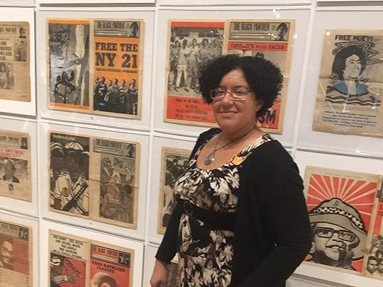 Photo of Kekla Visiting an Oakland Museum of California exhibit on the Black Panther Party. The wall images are spreads from The Black Panther, the Party’s weekly newspaper.