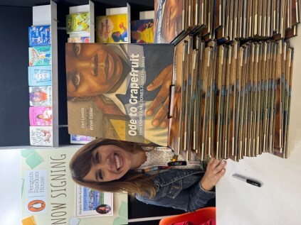 Spotlight image: Author Kari Lavelle signing copies of Ode to Grapefruit at the NCTE conference.