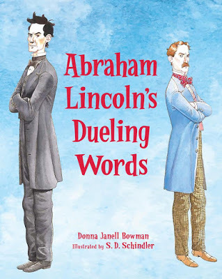 Check out the cover of Abraham Lincoln's Dueling Words, a nonfiction picture book by Donna Janell Bowman, illustrated by S.D. Schindler (Peachtree, April 2018). From the promotional copy: