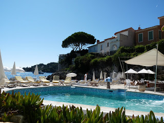 And the famous Negresco Hotel. Research there was a must. It's still a hotel at around $1000 a night so we didn't stay there. I was stopped by an impressive doorman, dripping gold braid, as I went up the front steps. I told him what I wanted and was escorted to the manager (or maybe it was the under, under manager). I handed him my card and told him that his hotel would feature in my new book."Madame, feel free," he said. So I spend a fabulous morning peeking into all the hidden corners of the Negresco hotel. Once again I discovered that the word "writer" opens so many doors.