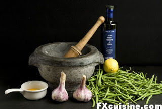 Havings started to write about French food yesterday, I had a brilliant idea. I'm actually going to cook and eat French food every day until Sept 6th. And I'm starting with something basic to go with crusty baguettes. It's called Aioli and it's a basic garlic mayonnaise and will keep in the refridgerator.8 garlic cloves, peeled2 egg yoksJuice of 1 lemon