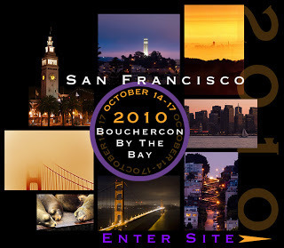 I've been silent for a while because I've been at Bouchercon--the World Mystery Convetnion, which was held only a few miles from me in San Francisco this weekend. Bouchercon is one of those enormous conventions that takes place all over the USA, sometimes in Canada or even in UK. (I'm waiting for Australia next!). And brings in writers, publishers, reviewers and readers from all over the world. There was a good British contingent--note I say British, not English, because Val McDermid and Denise Mina would kill me. There was Irish representation and even Icelandic.The local guest of honor was Laurie R. King, of Mary Russell fame. The international guest of honor was Denise Mina from Scotland and Lee Child was given a distinguished contribution to the genre honor. Lee brought with him not only members of his family--brother Andrew with lovely new wife Tasha Alexander, and niece Dana, but four Jack Reacher lookalikes for his Reachers Creatures party on Friday night. Imagine four buff guys, all six foot five and wearing tight Tshirts! That and the Dove bars in hospitality were highlights for me (okay, I'm shallow). Lee and Laurie were ominpresent, always with time to chat to everyone and epitomizing how generous and welcoming the mystery comunity is.