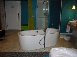 I seem to be devoting a lot of time on this blog to bathrooms I am encountering on my book tour. Maybe it's because when I'm tired, it throws me to find something weird. So far I've had:The large jetted tub in the middle of the room.A large photograph of an Afghan tribesman hanging in the bathroom--actually staring at me. I began to feel that I should be showering in a burka. Whoever thought that was comforting and relaxing bathing art?