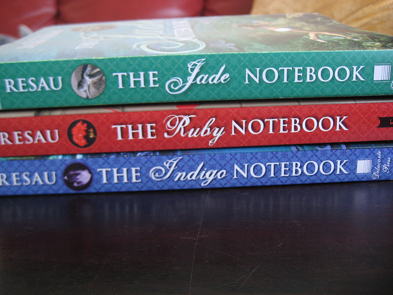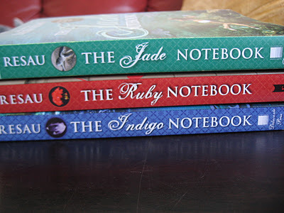 On Monday, Feb 20, I'll randomly select *three winners* from the U.S., who will each get a signed paperback copy of either The Indigo Notebook or The Ruby Notebook, or a hardcover of The Jade Notebook.