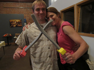 Here are me and Ian (hubby), who'd just come back from a business trip in Portland and was completely beat, but stuck it out (except for when he decided to go home to sleep, and walked the six blocks home, only to realize he'd forgotten the key, and then walked six blocks back to the party, poor guy)...