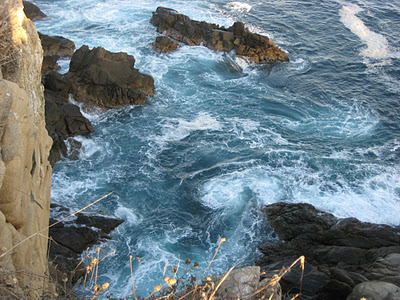 Some of the most exciting scenes in the book take place on the rocky crags around Punta Cometa... It's such a dramatic setting-- seawater churning and beating against the cliffs... just begging for a story climax to happen here (hint hint...)
