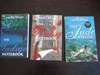 *If you won, please email me asap at Lauraresau [at] gmail [dot] com with the subject heading NOTEBOOKS CONTEST WINNER. Please let me know (this week!) who you'd like me to sign the book/bookmarks to and what address to send them to. If you don't get an email back from me, that probably means I didn't get your email for some reason, in which case you could contact me via a facebook message or blog comment.)*