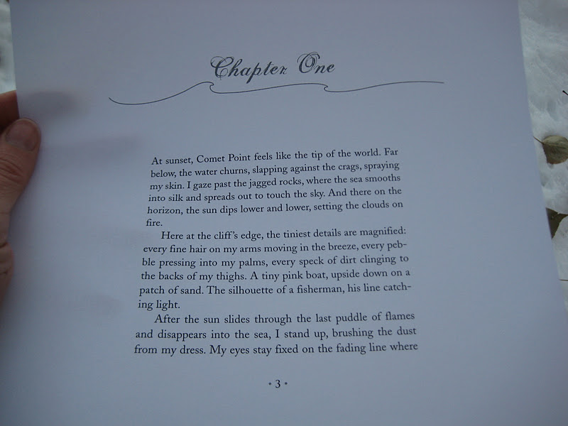 You'll have to tilt your head to see the first page of the first chapter (click the image to make it bigger.) Or, you could go to The Jade Notebook page that I recently added to my website for an excerpt. (And it's available for pre-order now for e-reader and hardcover: indiebound or amazon or Barnes and Noble.)