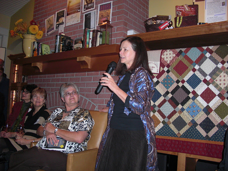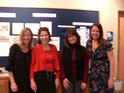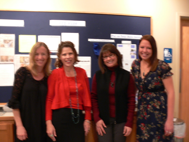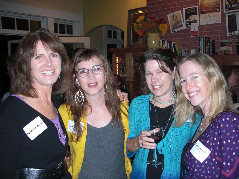 Natasha Wing (fabulous picture book author), Sarah Scobey (great librarian), Laura Pritchett (talented novelist and writing group buddy) and me at the reception for Geraldine Brooks