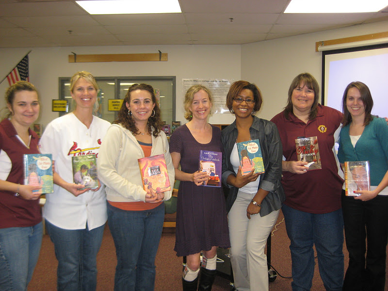 Here I am with reading teacher Dylana (oops-- I'm probably supposed to refer to her as Ms. ____, but I'm blanking on her last name.) Very cool lady-- it's so fun to talk with teachers between presentations. I wish I could post pics of kids, but different schools have different rules about it, so I didn't take pics this time.