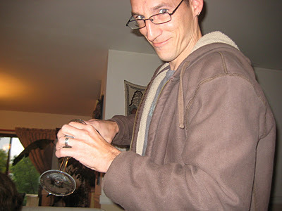 Todd Mitchell (author of The Secret to Lying, one of my all-time fave books), pouring the champagne...