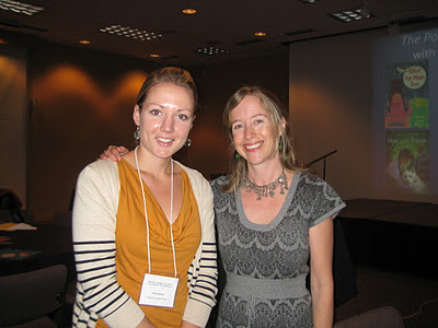 I've also been conferencing! I did a lunchtime keynote for CLAS (Colo Lang Arts Society) in Golden. Here I am with a teacher from Centennial Middle-- her school is reading Red Glass as a One School Reads book... I"ll be visiting them in the spring-- exciting!