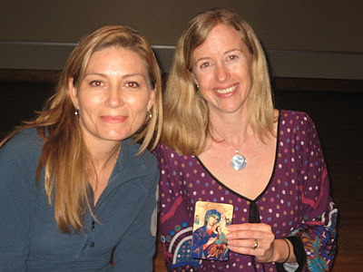 I'm doing some author events at Mount Saint Mary's College in Maryland now... and this lovely librarian, Becky (I think that's her name-- my apologies if I got it wrong!)-- she gave me a beautiful image of the Virgin Mary for the little altar in my writing trailer. Isn't that incredibly thoughtful and sweet?! Thank you, Becky, for coming and for the delightful gift! I LOVE it!