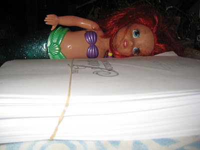 Page proofs for JADE-- all 374 pages (with The Little Mermaid for scale...)
