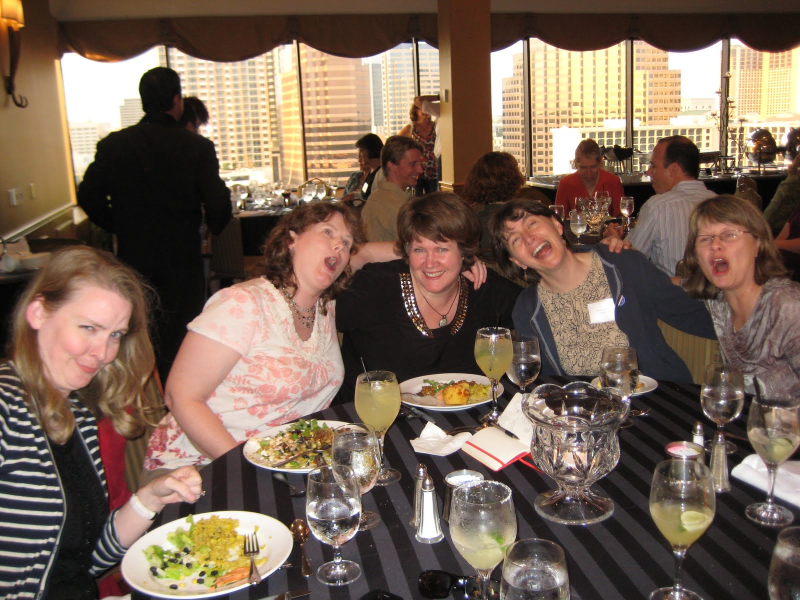 Finally getting around to posting pics of my agent's (Erin Murphy) annual retreat! I went to the first one in Santa Fe a few years ago-- there were about twelve of us there. I think I missed the one after that (in Vermont) because that's the year Lil Dude came from Guatemala. The next year was Portland, and the next Chicago, and this year, in Austin (which was our biggest yet-- over 40 amazing authors!) I really love these people-- it's a rare and wonderful bonding experience. We spend time talking about writing and publishing, gleaning and sharing wisdom. We also eat and laugh a lot (and even cry a little...) I'm too pressed for time at the moment to link to everyone's individual websites, but if you go to Erin's website, you'll find links to everyone else's.