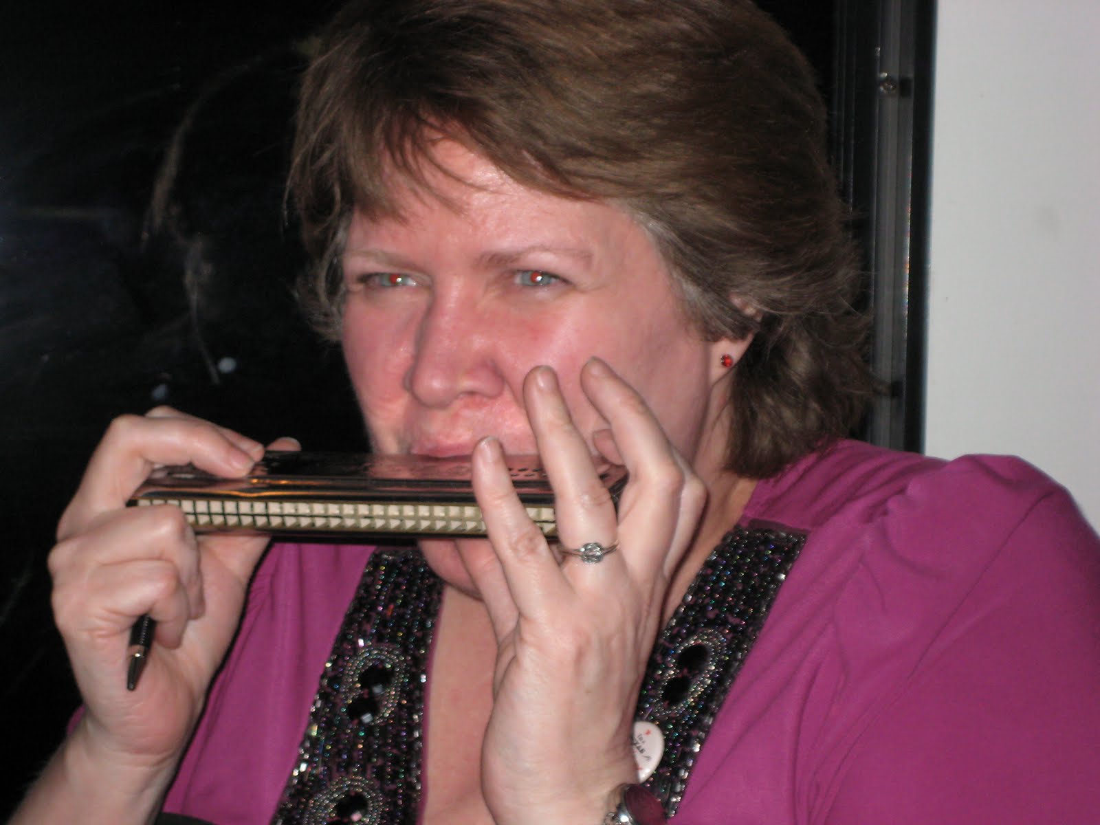 Or playing harmonica... (something she and Lil Dude have in common)