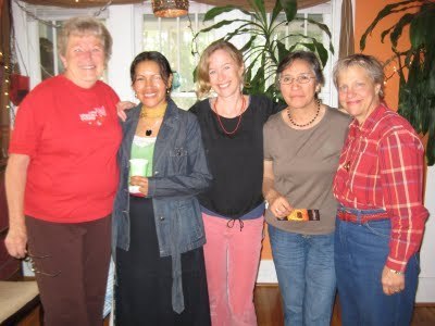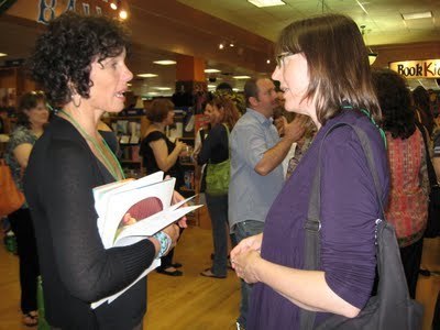 Here we are with Teresa Funke, who organizes the local SCBWI "schmooze group" in town. She and I were also involved in the Imaginantes workshops the week before last... she had interesting things to say about her Mexican ancestry and the relatives who inspired her book, V for Victory.