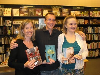 Just got back from Aspen... but before I write about that, I want to post these pics of the Barnes and Noble event from last week with my friends and co-finalists in the Colorado Book Award, Todd Mitchell (who is the winner in the YA category for The Secret to Lying-- yay, Todd-- well-deserved! (I LOVE that book!) and Amy Kathleen Ryan (another super-talented writer-- I just devoured the review copy of her upcoming sci-fi book Glow (Sept 2011 release). I'll do a longer post about Aspen and the awards ceremony and everything, but since I just have a few minutes now, I thought I'd let you take a peek at these pics.