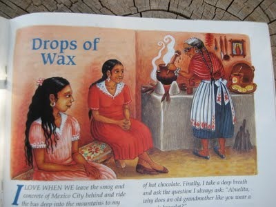 art by Emma Shaw Smith My first Cricket story, "Drops of Wax," was published in the August 2004 issue. Here are pics of that one-- the artwork by Emma Shaw Smith is so lush and detailed-- I especially love the textures and colors of the clothing.