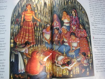 I really love this illustration-- it's based on a southern Mexican folklore/mythology. If you've read What the Moon Saw, you'll see a reference to it-- the cave of candles and the woman who is in charge of life and death. I also wove this folklore into this short story.