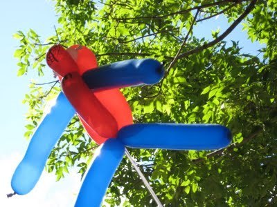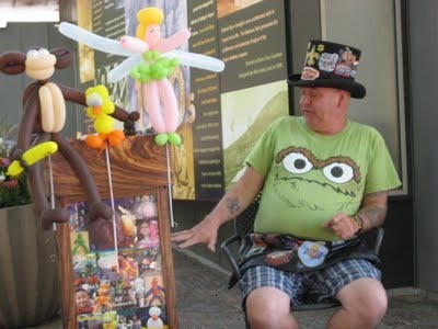 Here's Checkers, the balloon man who we encountered last summer in Aspen and were very excited to see again. (Last year Lil Dude requested the Little Mermaid. This year it was Spiderman.)