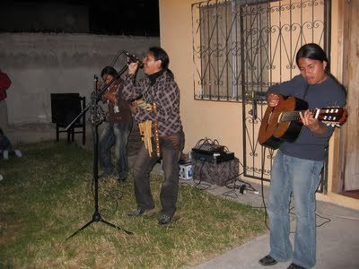 Maria's husband, Tino (in checked shirt)-- amazing musician. In their front yard.