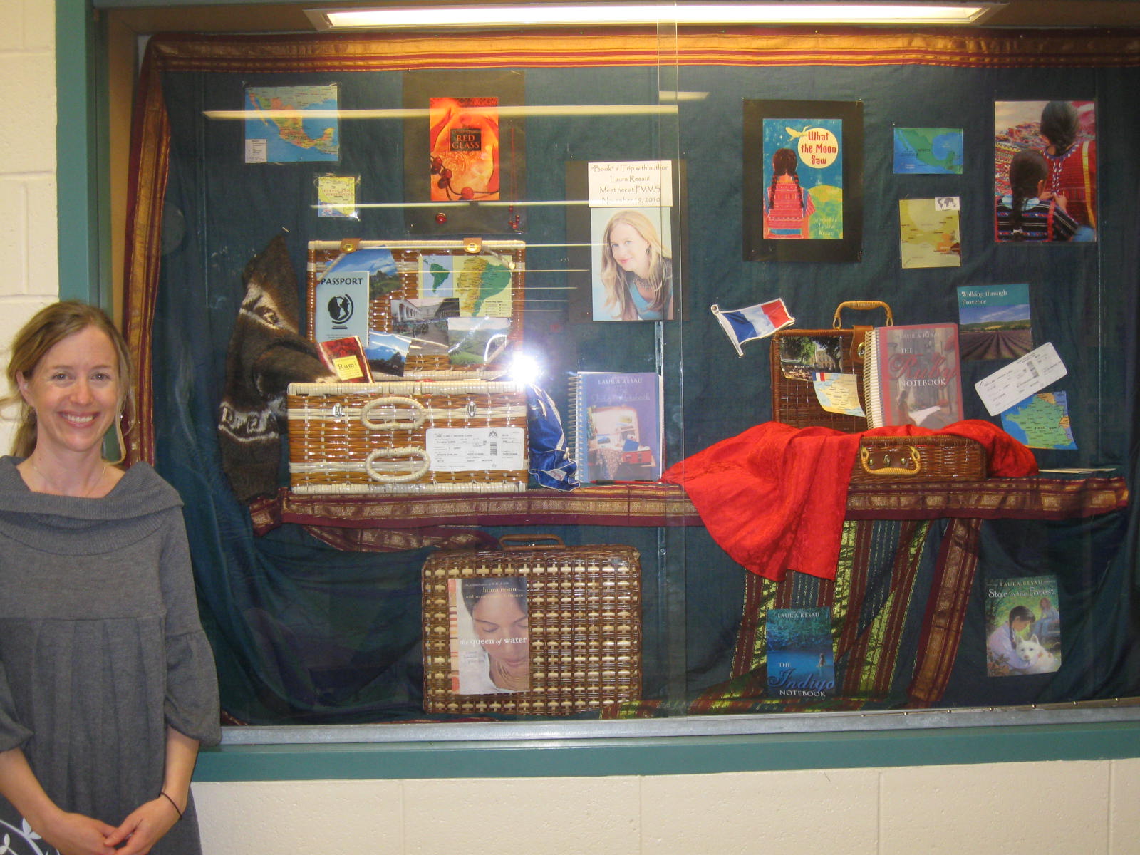 *Remember, you can click on the images to enlarge them!*I love, love, love, when teachers and librarians do such creative things with my books. It's such a joy for me! Sandy's enthusiasm rubbed off on everyone at the school (Patrick Marsh Middle School in Wisconsin)... Her wonderful colleagues and students were bursting with great energy. During the two (!) delicious Mexican-themed lunches they served me, I heard kids' and teachers' great comments and questions on Red Glass, The Indigo Notebook, and Star in the Forest. Thank you guys! I loved hearing about your connections to my books!