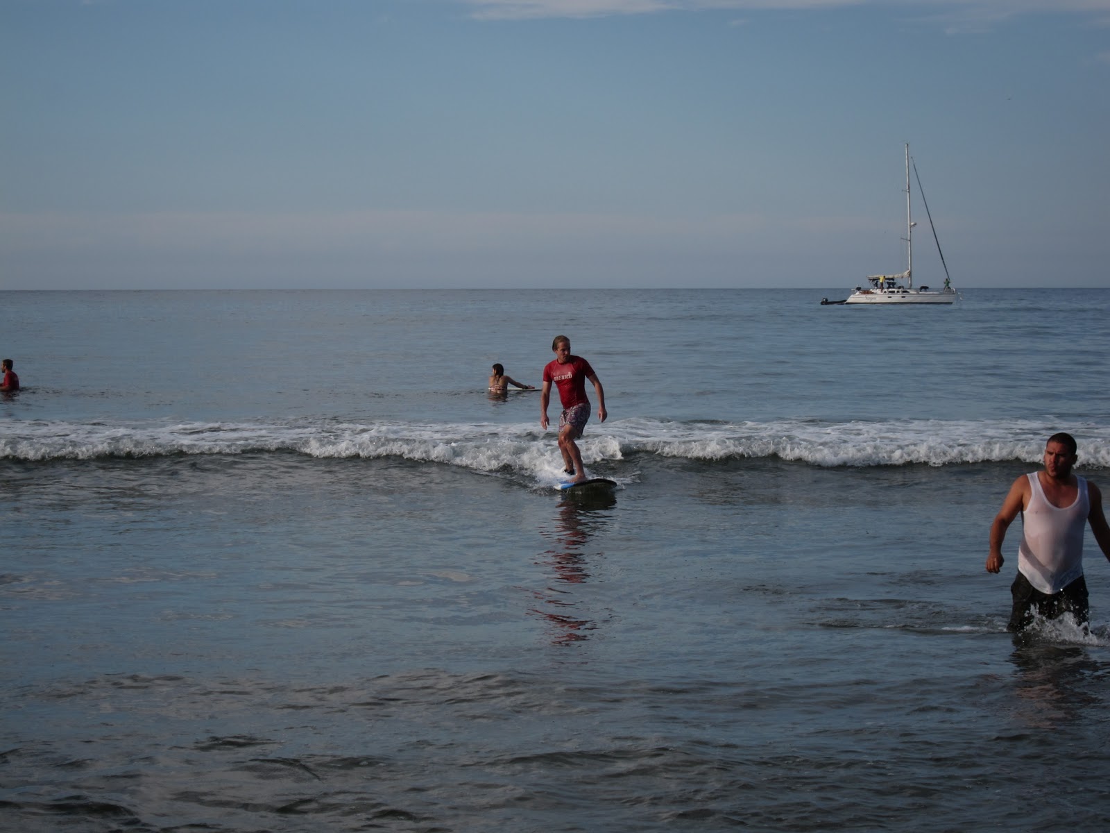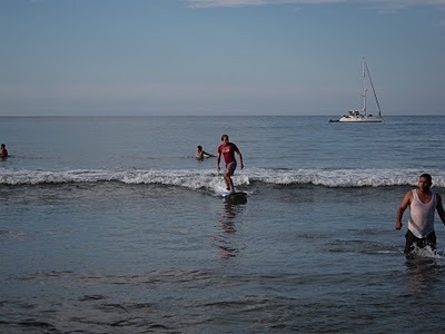 There was surfing. (Doesn't Ian look cute here? Funny-- I knew him in high school-- and back then he had that exact same pair of swim trunks! They must be 20 years old!)