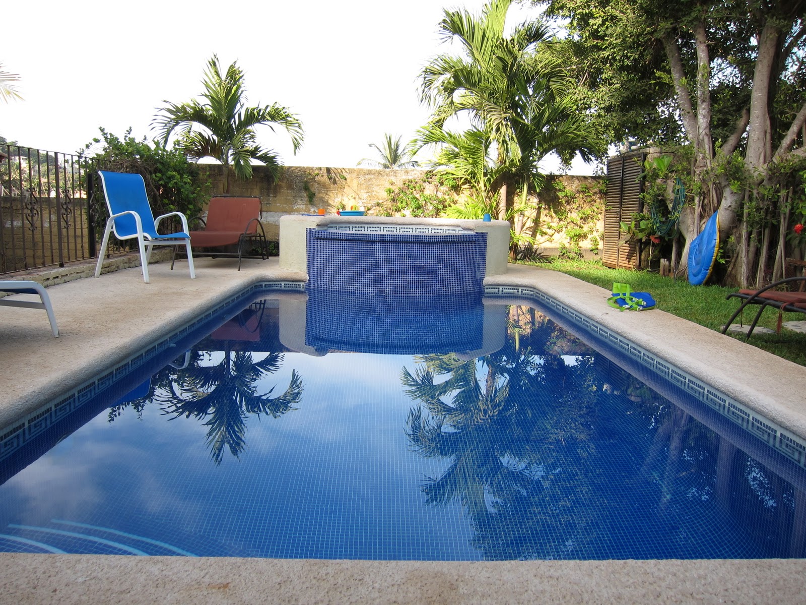 There were dips in the pool... (the kiddie pool was so perfect for the three-year-olds-- Lil Dude played in there until he was blue-lipped and shivering like crazy and we had to drag him out...) (And oh how I wish I could include photos of him here-- sooo cute with his goggles and boogie board).
