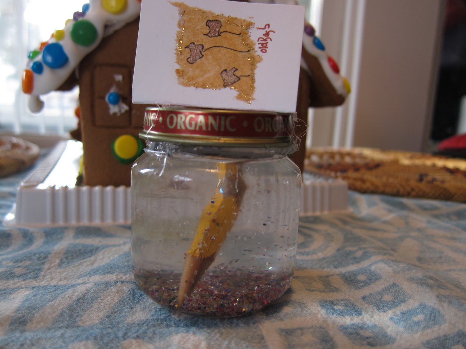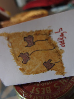 Her card was made by a friend of ours, Libby, who makes art from old teabags! You can read an excerpt from her essay about her teabag art in Going Green here. As a tea fiend, I really appreciate her work.... so pretty! I love the color of tea.
