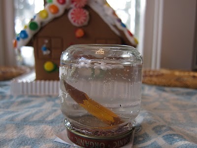 It's a writer's snow globe! I LOVE snowglobes... and this is the first homemade one I've gotten. Laura's the author of some wonderful fiction (Hell's Bottom, Colorado and Sky Bridge) and she's edited a bunch of great environmentally-themed anthologies, one of which is Going Green-- it's all about cool ways of gleaning new uses for junk.