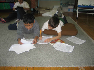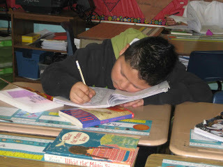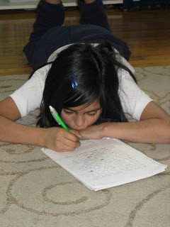 These shots were taken later, during writing activities inspired by my presentation. Don't you love the intense concentration? It's the look of getting lost in the world you're creating...