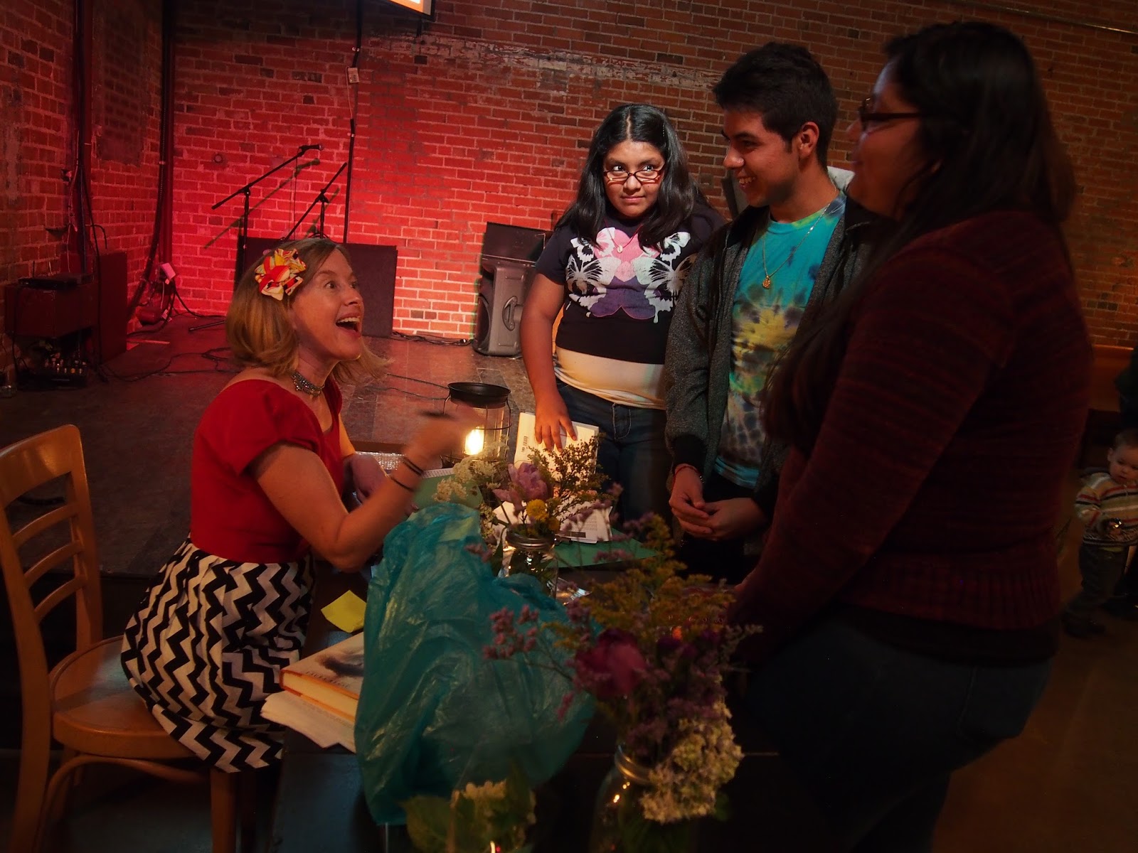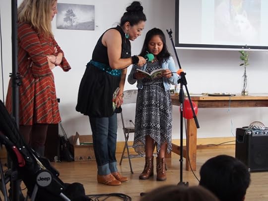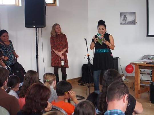 Alma (right) was one of the girls who interviewed me *in Spanish* about The Queen of Water for the local Bookends TV show. She came with her awesome friend Ivan, who's also a fan of The Queen of Water, and her sweet cousin Karen.
