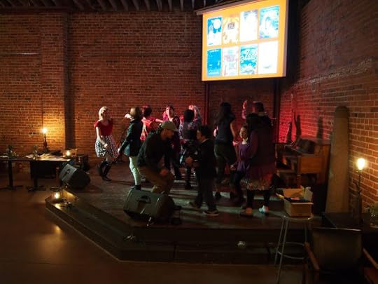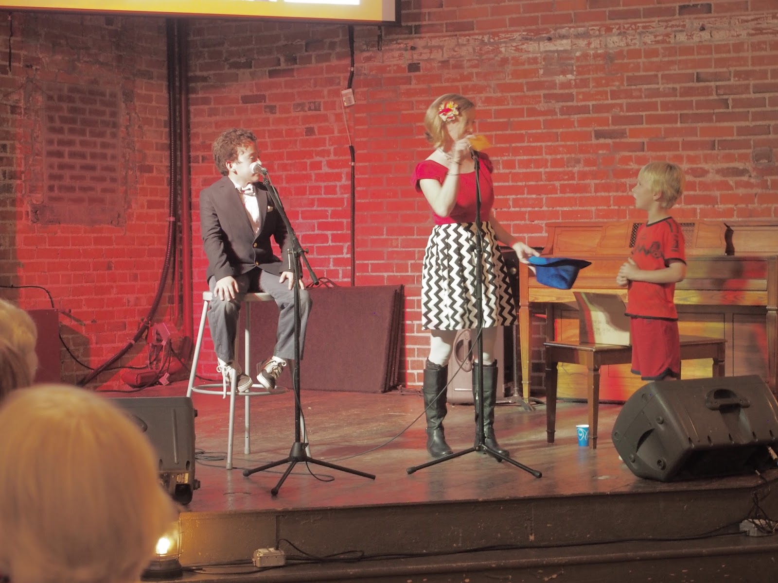Lil Dude was the Master of Ceremonies, and did a great job introducing me, doing magic tricks, interviewing me, drawing names for prizes, playing his White Stripes song on his guitar, and generally ad-libbing jokes throughout.... He loves being onstage and has been looking forward to this for a long time.