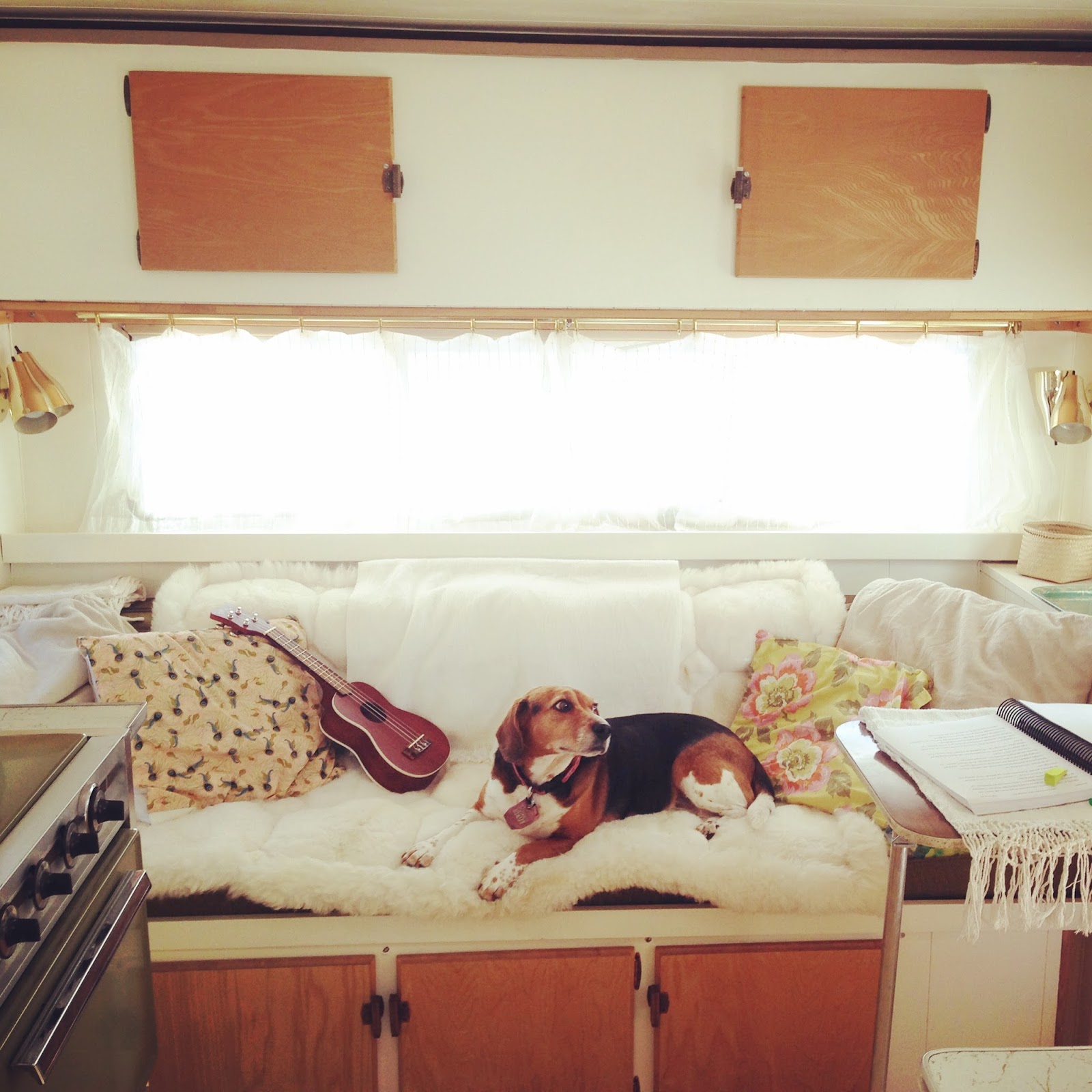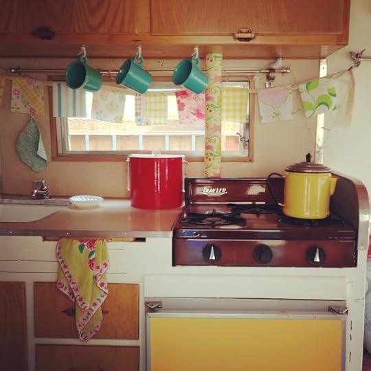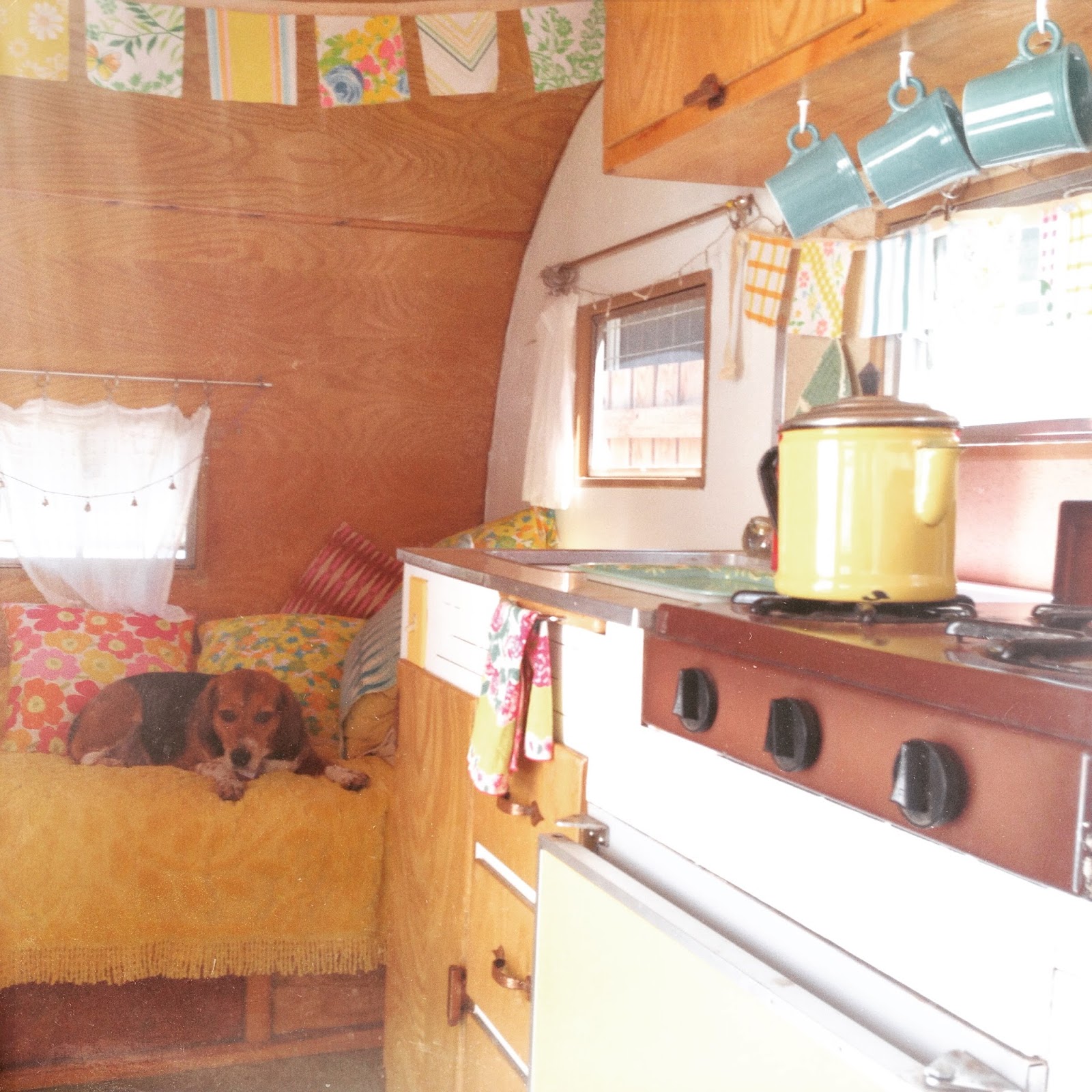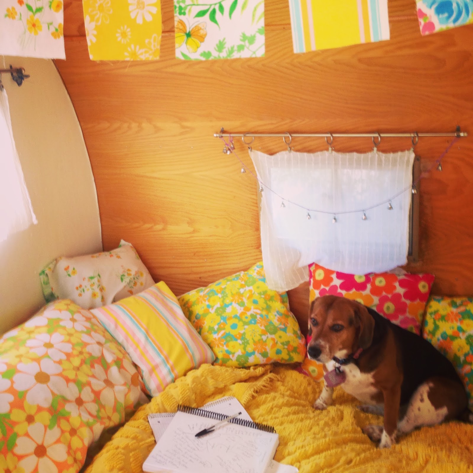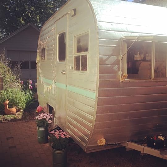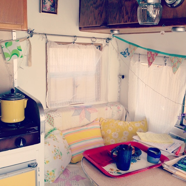 We just got Winnie a few months ago, and I had fun doing some renovations-- mainly painting and ripping up the carpet to reveal gold-sparkled original linoleum. Ian kindly painted marigold yellow stripes on the sides. I love going to flea markets and thrift stores to find cool stuff for her. I've been doing some book revising and tea-drinking on the comfy sofa and hosting a few *tiny* dinner parties in her dining area. When the weather warms up and she's in the mountains, I plan to do some writing retreats with her. :-)