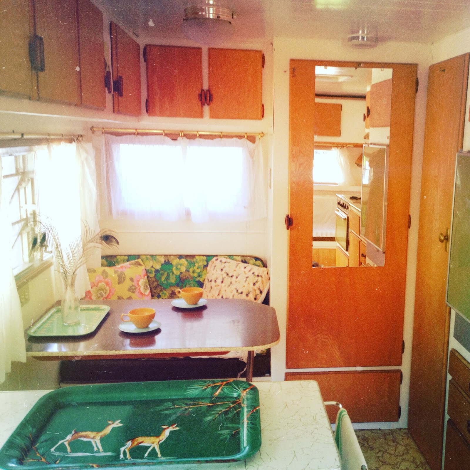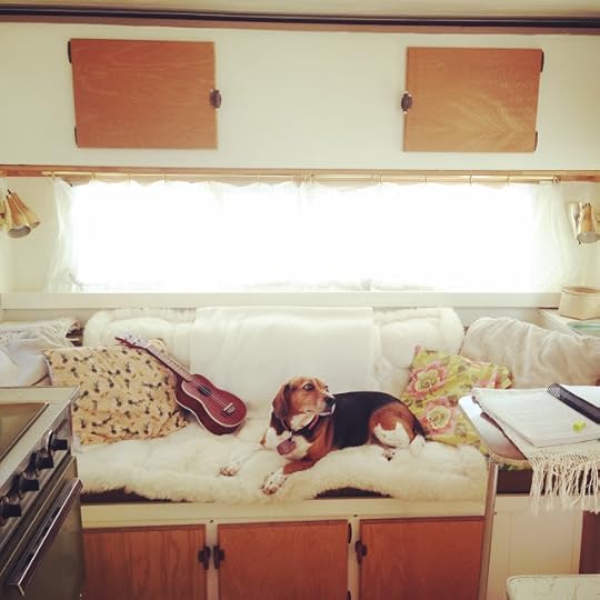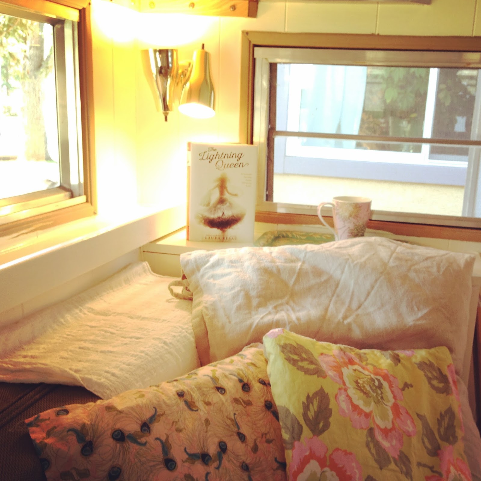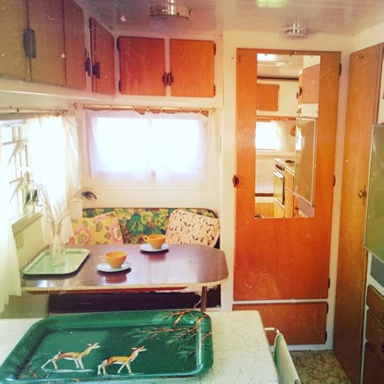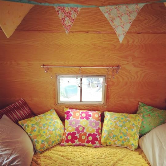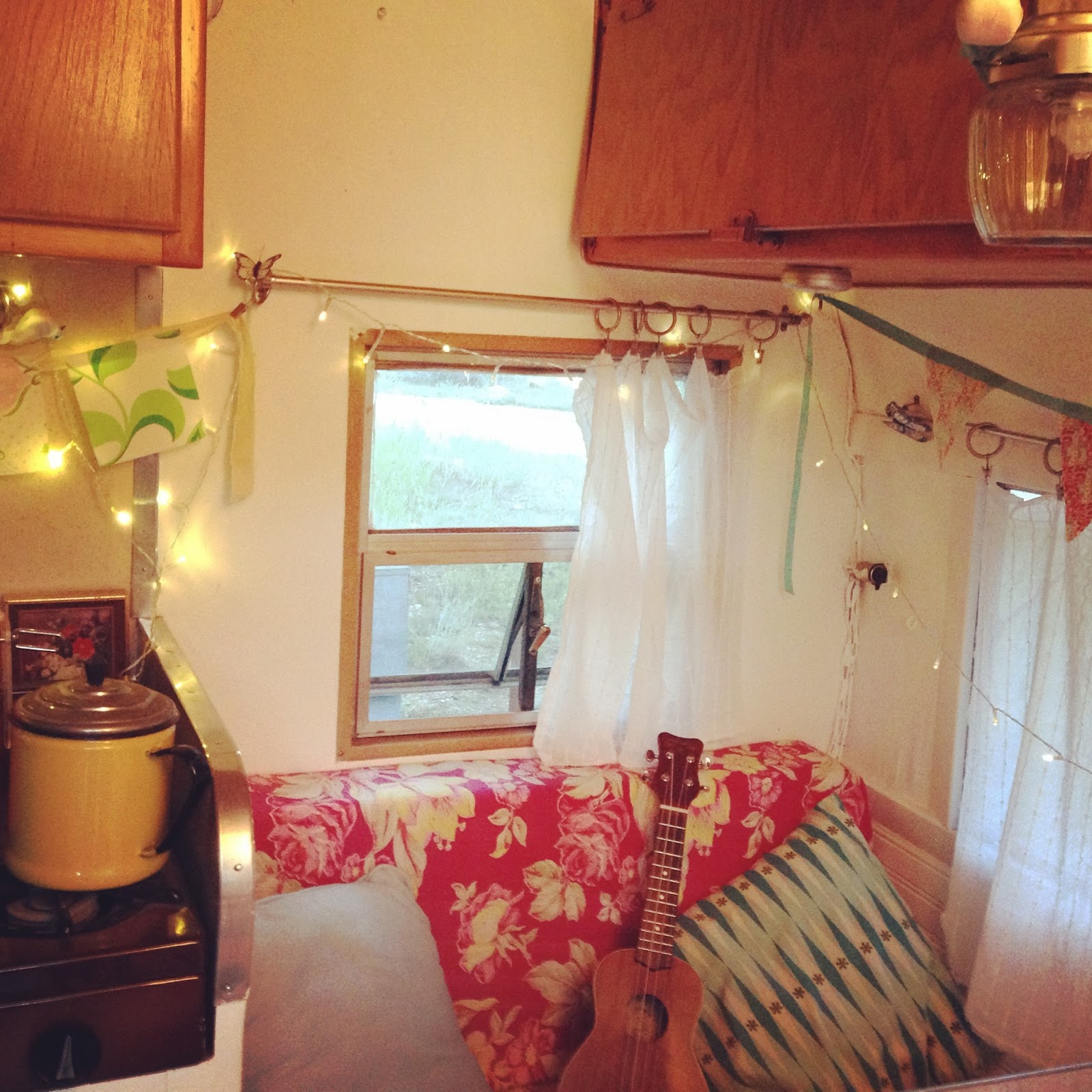 We just got Winnie a few months ago, and I had fun doing some renovations-- mainly painting and ripping up the carpet to reveal gold-sparkled original linoleum. Ian kindly painted marigold yellow stripes on the sides. I love going to flea markets and thrift stores to find cool stuff for her. I've been doing some book revising and tea-drinking on the comfy sofa and hosting a few *tiny* dinner parties in her dining area. When the weather warms up and she's in the mountains, I plan to do some writing retreats with her. :-)