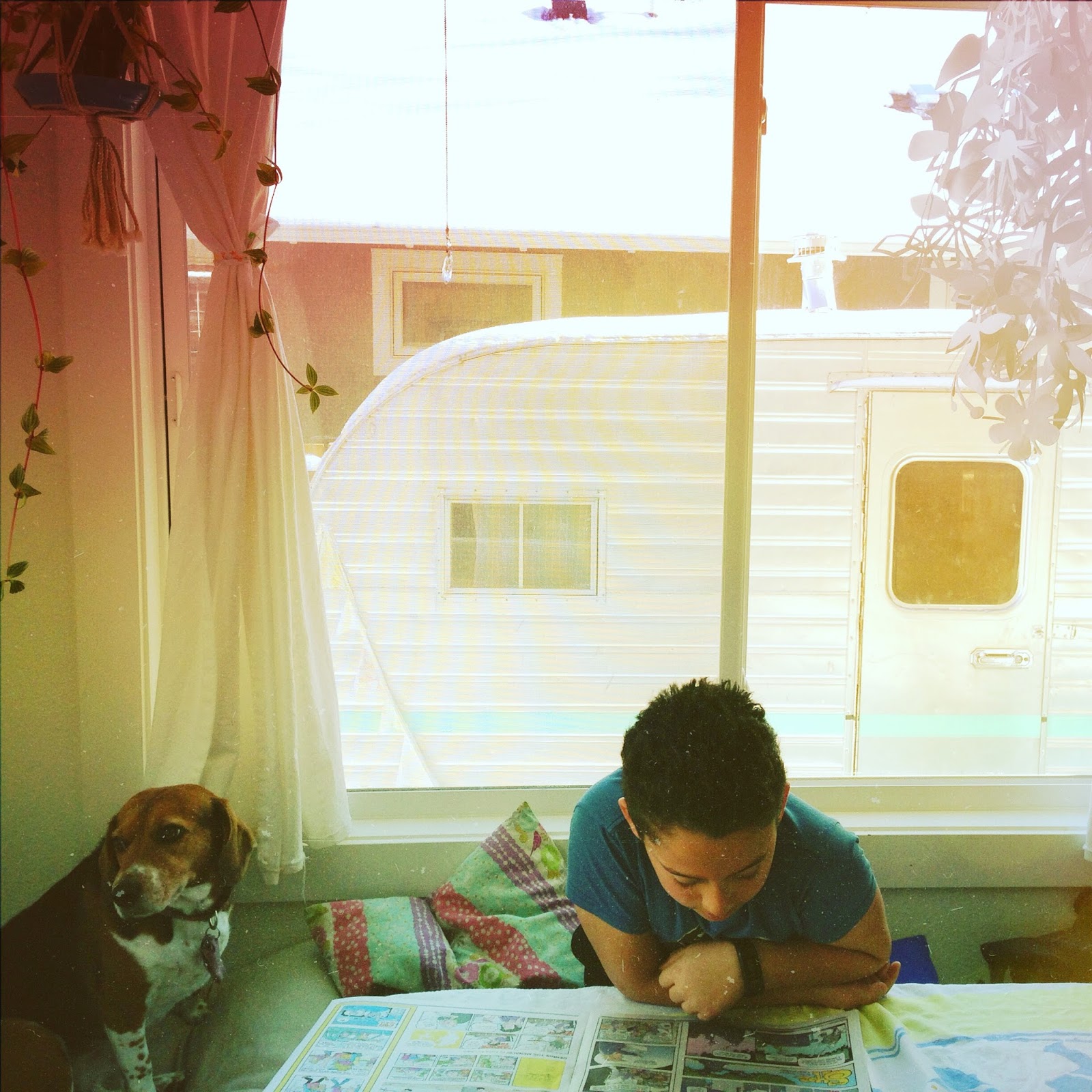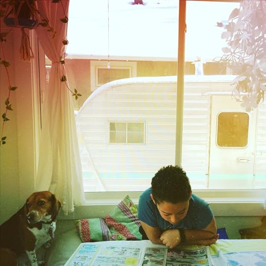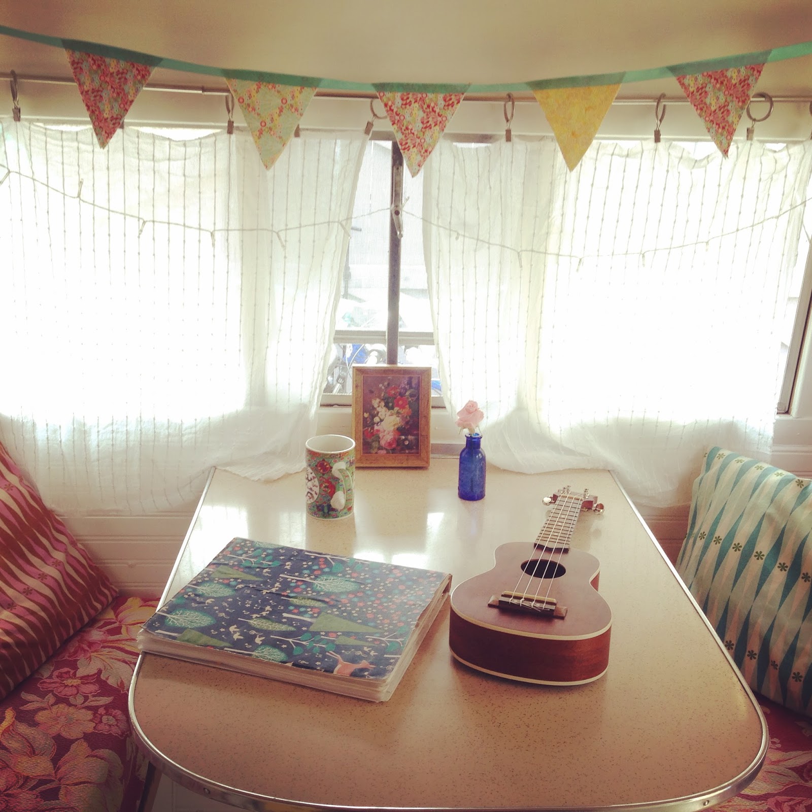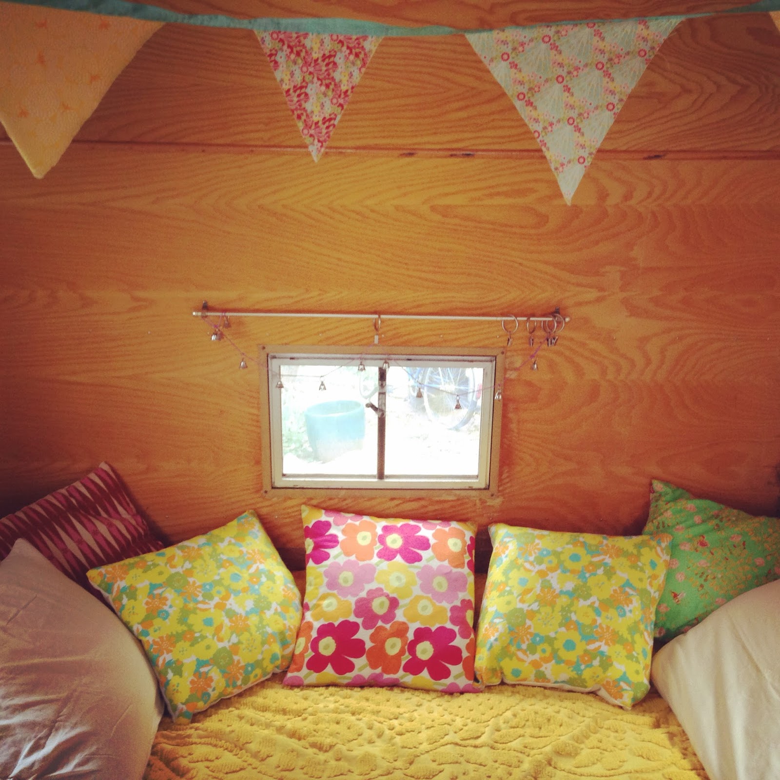 We just got Winnie a few months ago, and I had fun doing some renovations-- mainly painting and ripping up the carpet to reveal gold-sparkled original linoleum. Ian kindly painted marigold yellow stripes on the sides. I love going to flea markets and thrift stores to find cool stuff for her. I've been doing some book revising and tea-drinking on the comfy sofa and hosting a few *tiny* dinner parties in her dining area. When the weather warms up and she's in the mountains, I plan to do some writing retreats with her. :-)