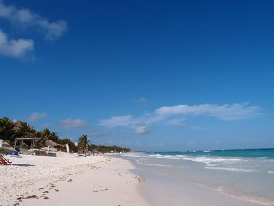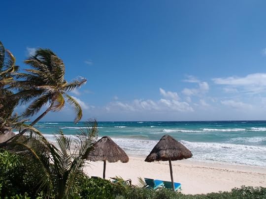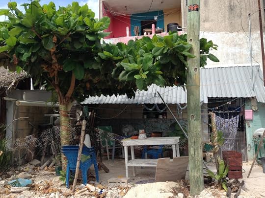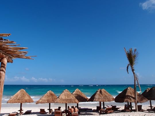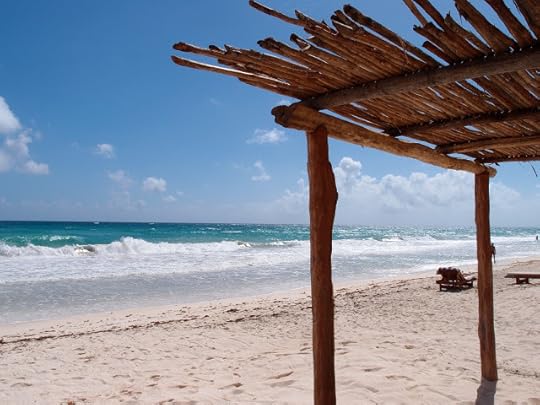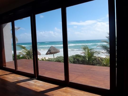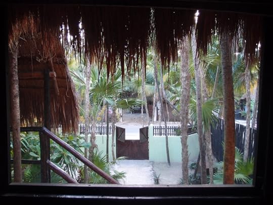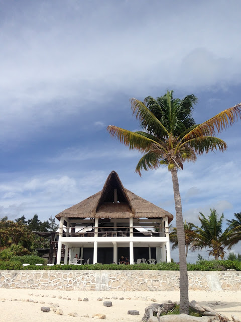 So, let's see... we *did* do some things beside write and read and walk and swim. Laura visited the cool Coba Mayan ruins, where I've already been a few times, and wrote about in another post. I went to a yoga class in this studio on the beach... behold my view from the mat!