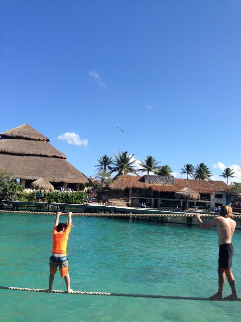 We went to Xcaret for a couple days-- it's kind of an eco-theme park.... One of the coolest things about it were these underground rivers that flowed through caves... you could float along the crystal-clear water for about 45 minutes on each river. Enchanting!