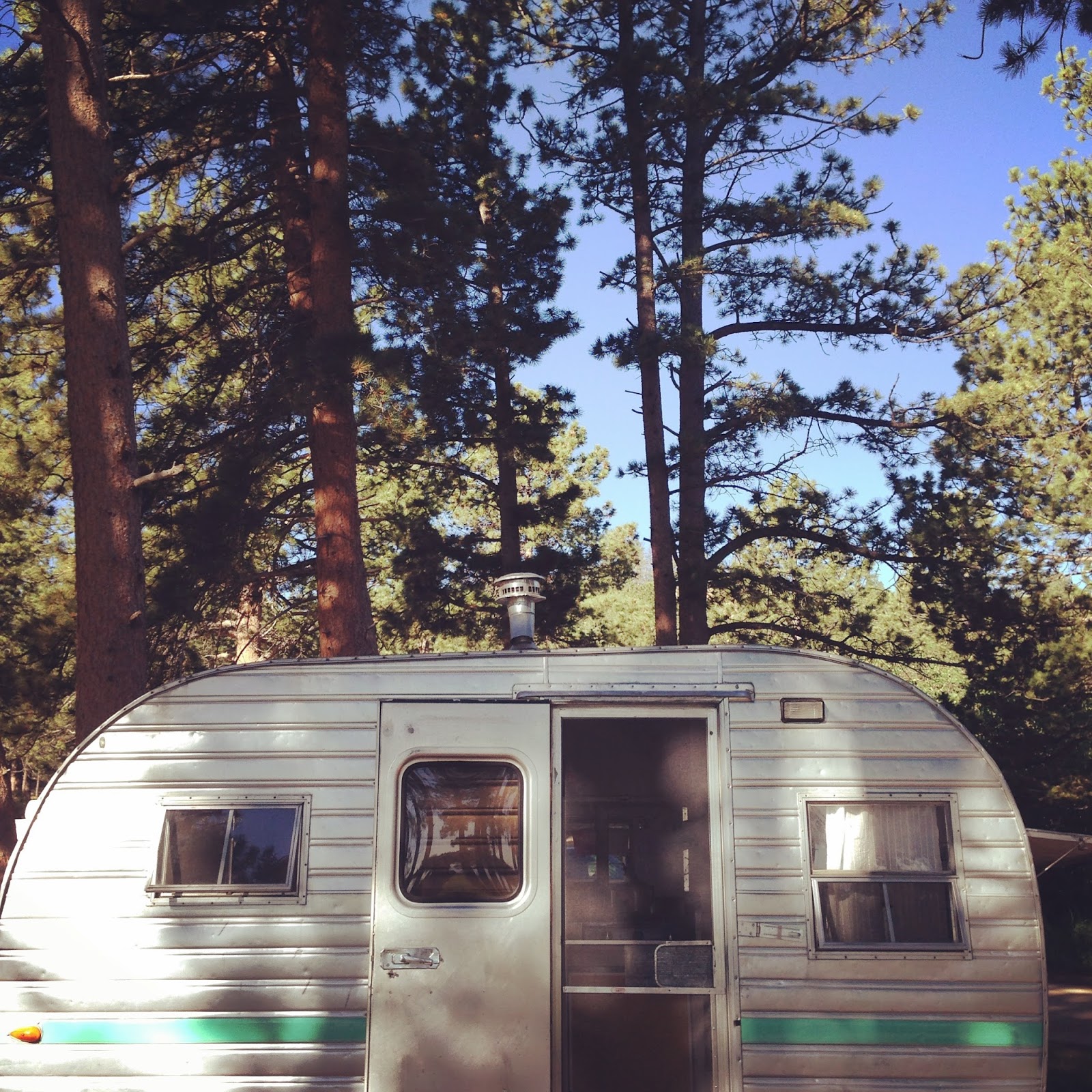 This is our beloved old one, Peachy, named after my beautiful great-grandmother. She's a sweet little ten foot long canned ham from the late 1950s. She lives happily in our driveway and gives us a creative space to play and work. I've written three books sitting at her table, and revised more while lounging on her bed. We take her to the mountains for weekend outings in the summers...