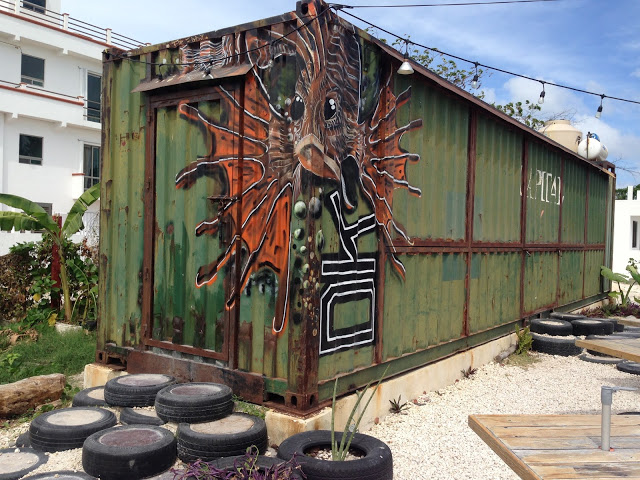 Another restaurant we loved-- DK's... This place was made from a shipping container (in this pic, it was closed, but when we went, the walls opened up and cafe tables were set up around it.) Tasty blowfish tacos!