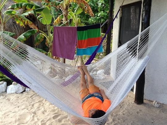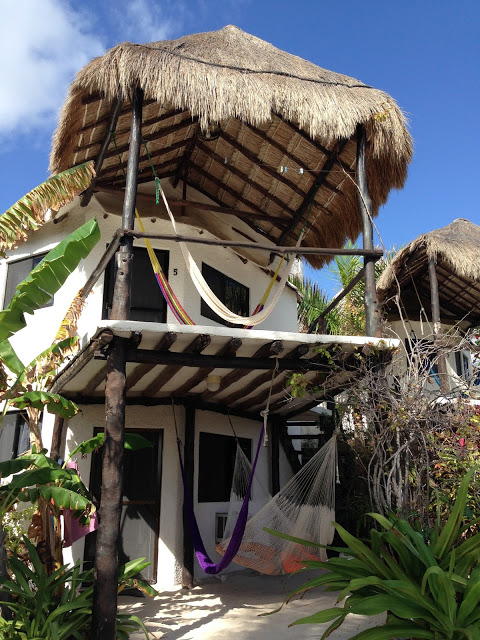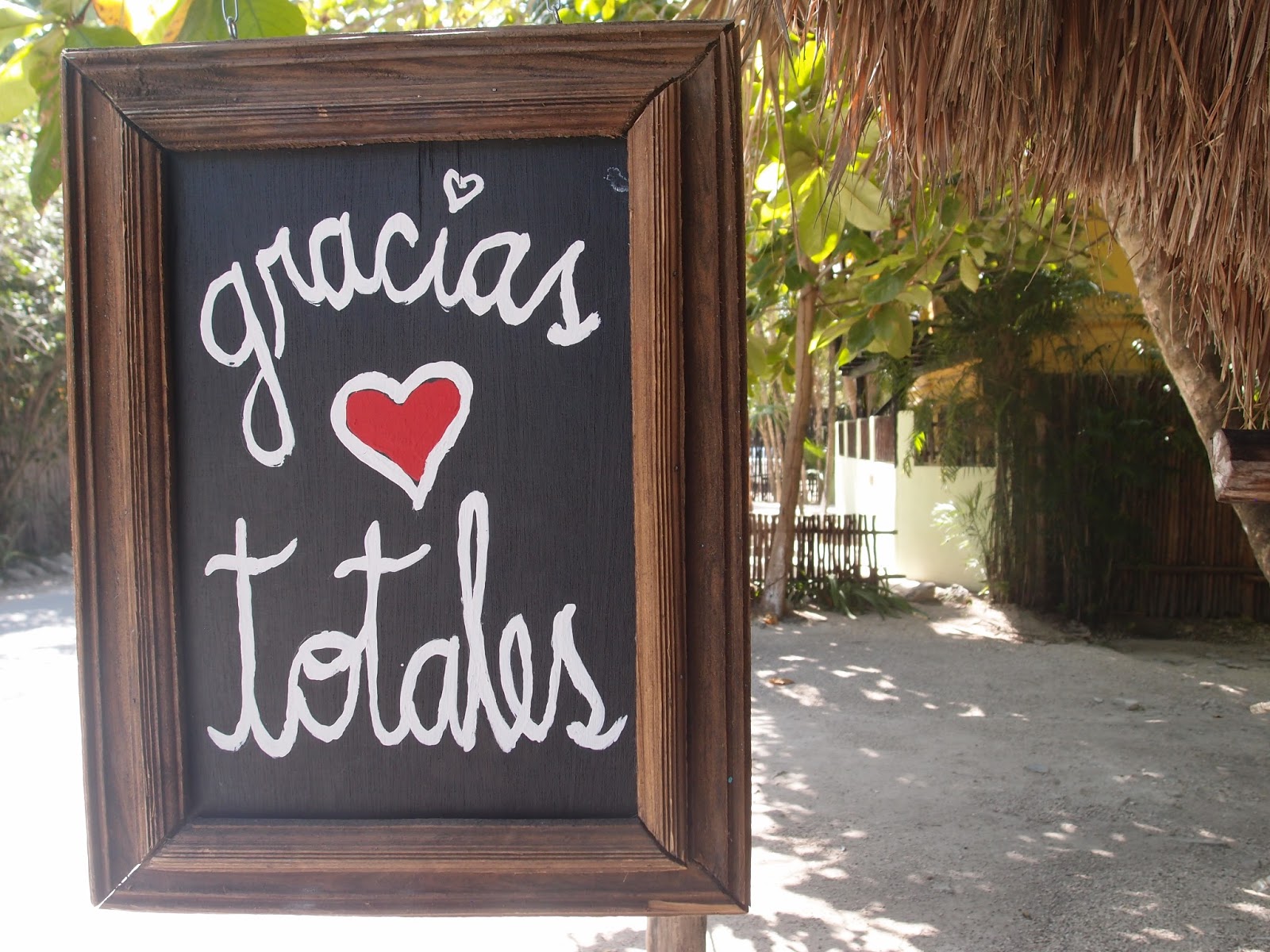 We stayed in a simple, sweet ecolodge called Las Palmas Mayas on the side of the road opposite the beach, which was just a one minute walk away. Woulda been nice to stay right on the beach, but this place was much, much cheaper. And it had a kitchen where we could fix ourselves breakfast and tea and snacks, which made it very budget-friendly.