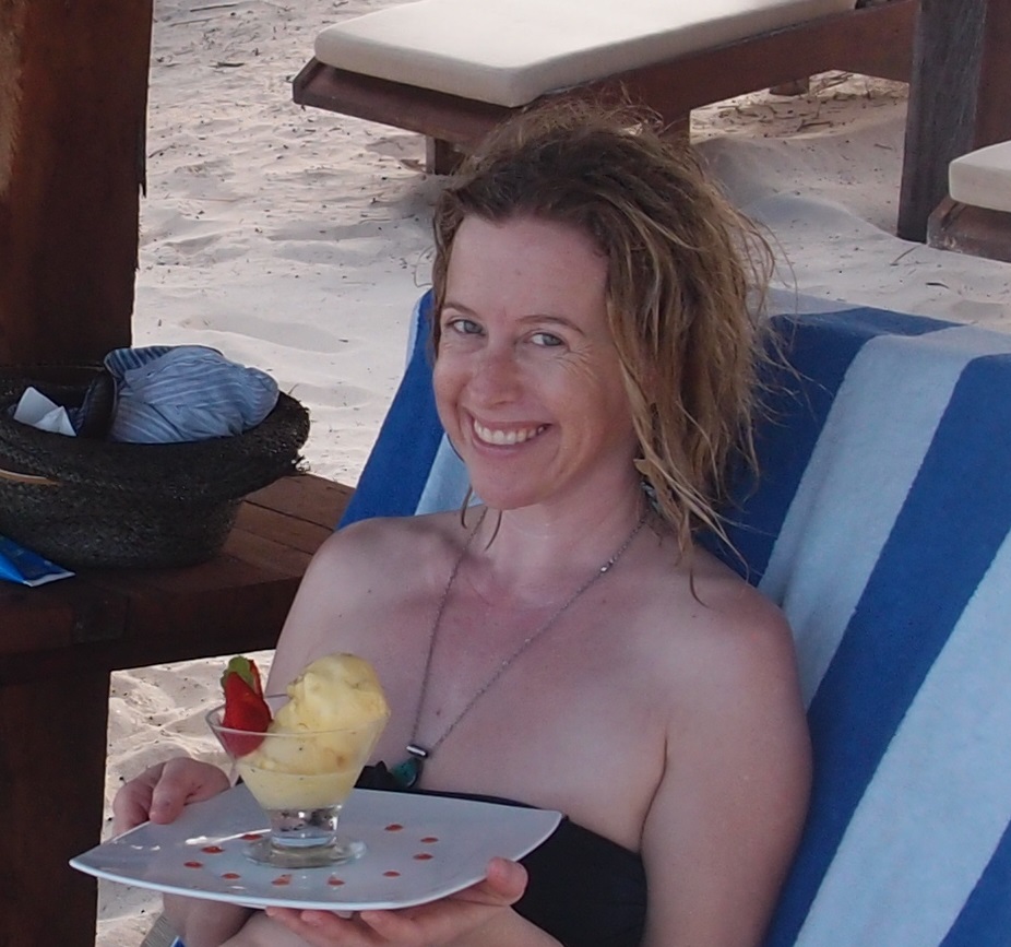 Passion fruit ice cream! I love this flavor so much-- perfect mix of tart and sweet-- and the crunch of the seeds is deeply satisfying. Here, we're on the beach chairs of the Alma hotel, but our favorite evening place for food (and magical ambiance and live salsa music) was La Zebra.